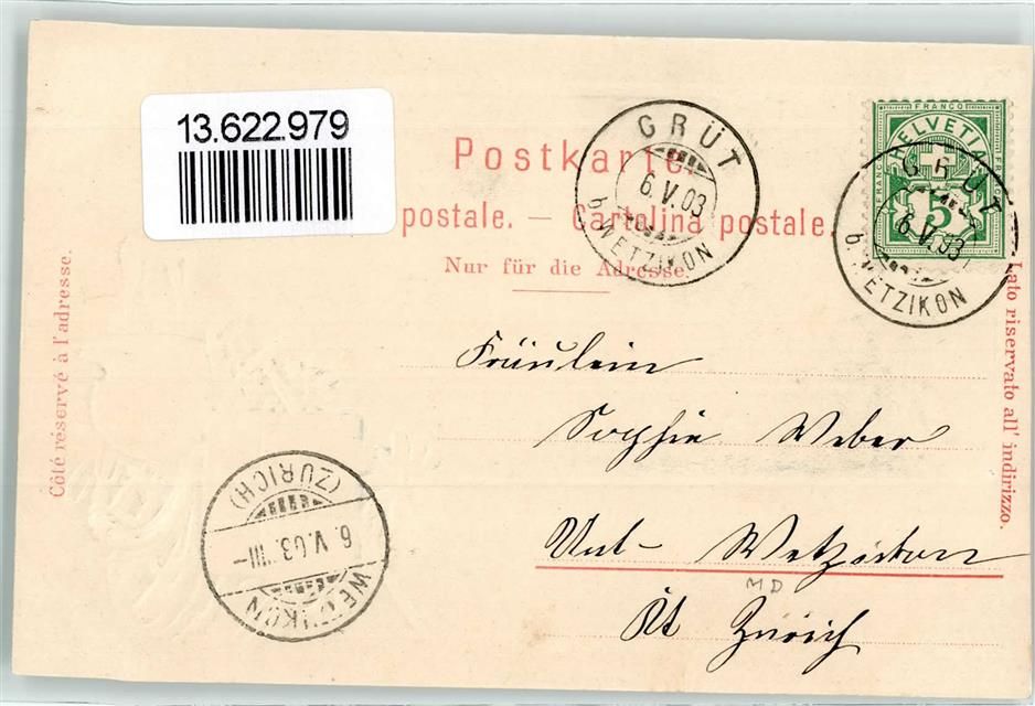 8640 Rapperswil SG Prägedruck Steinbock Wappen Lithographie