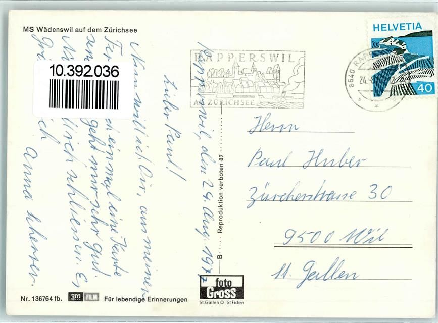 8640 Rapperswil SG - Zürichsee Motorschiff Wädenswil