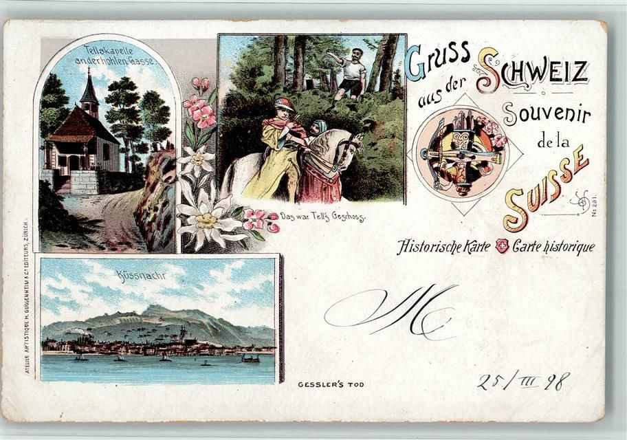 Küsnacht ZH, Gruss aus - Historische Karte Verlag Guggenheim Gesslers Tod, AK
