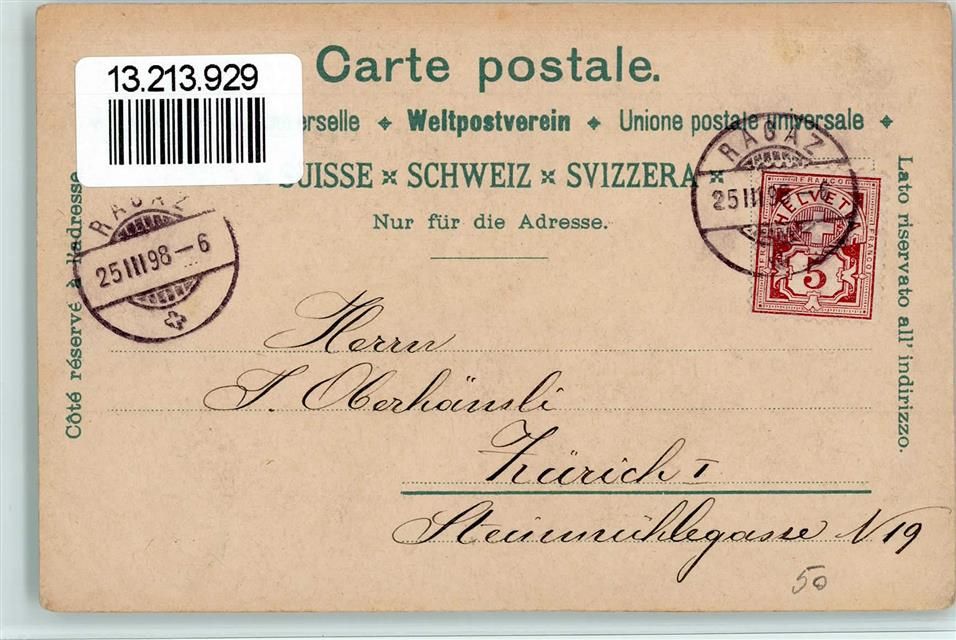 8700 Küsnacht ZH 1898 Lithographie Gruss aus - Historische Karte Verlag Guggenheim Gesslers Tod, AK