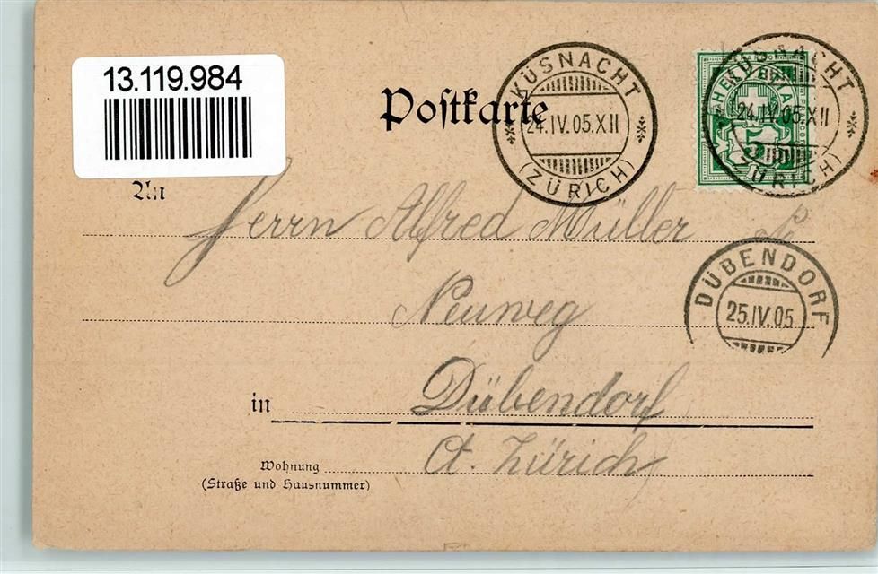 8700 Küsnacht ZH Gebrauchsspuren 1905 Kantonales Lehrerseminar