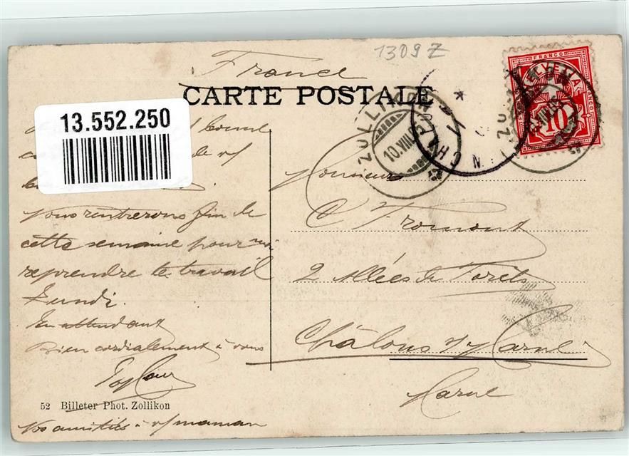 8702 Zollikon 1905 Foto AK G´stad- Straße