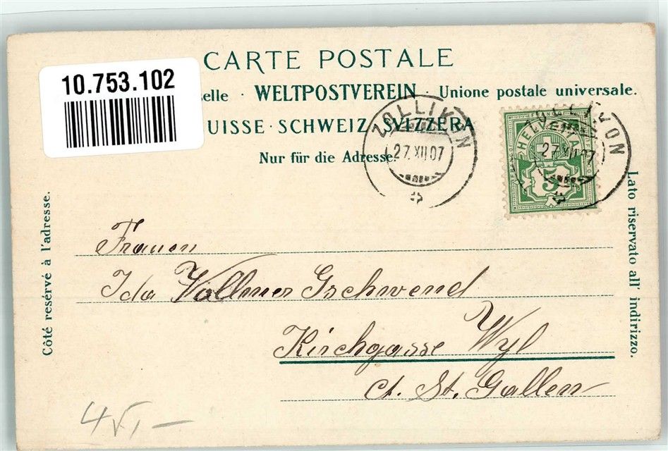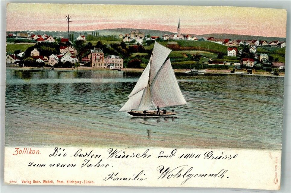 8702 Zollikon 1907 Foto AK Segelboot