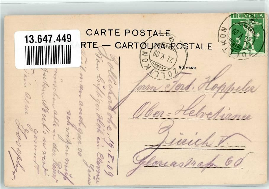 8702 Zollikon 1909 - Gasthaus zur Höhe Gartenanlage
