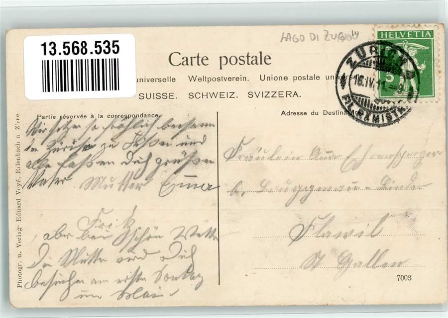 8703 Erlenbach ZH 1911 Gebrauchsspuren Gasthaus zum Sonnenberg