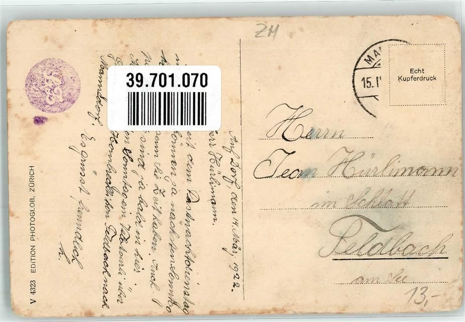 8708 Männedorf 1922 Gebrauchsspuren