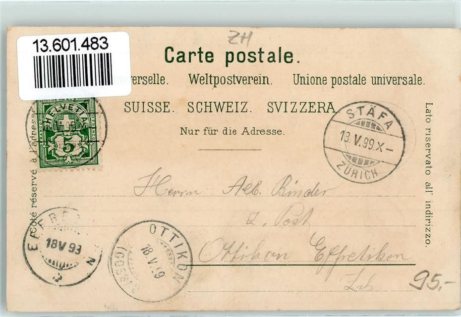 8712 Stäfa 1899 Lithographie Kirche Schule