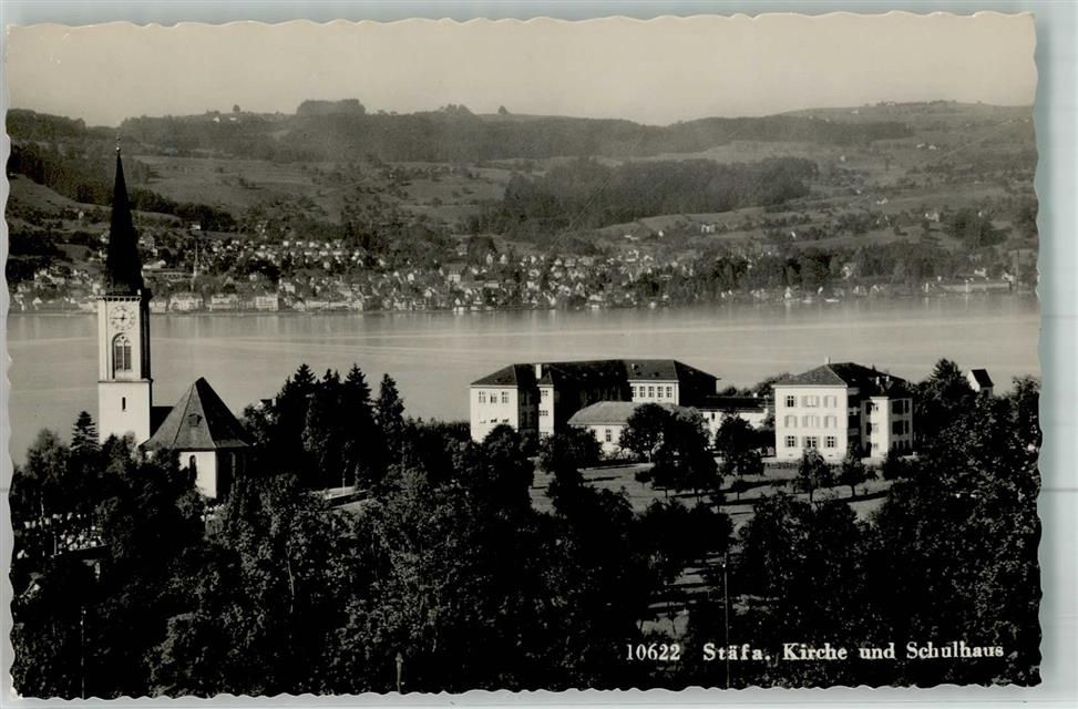 8712 Stäfa 1959 Foto AK Kirche Schulhaus