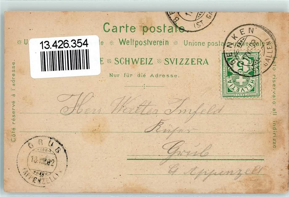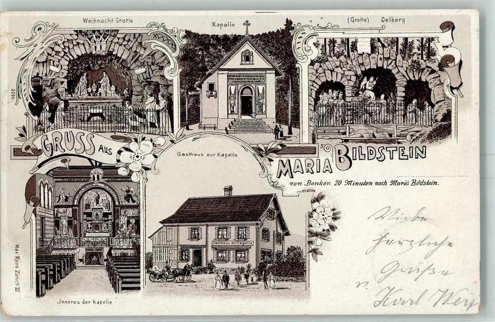8717 Benken SG 1902 Lithographie Maria Bildstein Weihnacht-Grotte Kapelle Grotte Ölberg Gasthaus Zur Kapelle