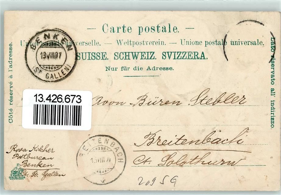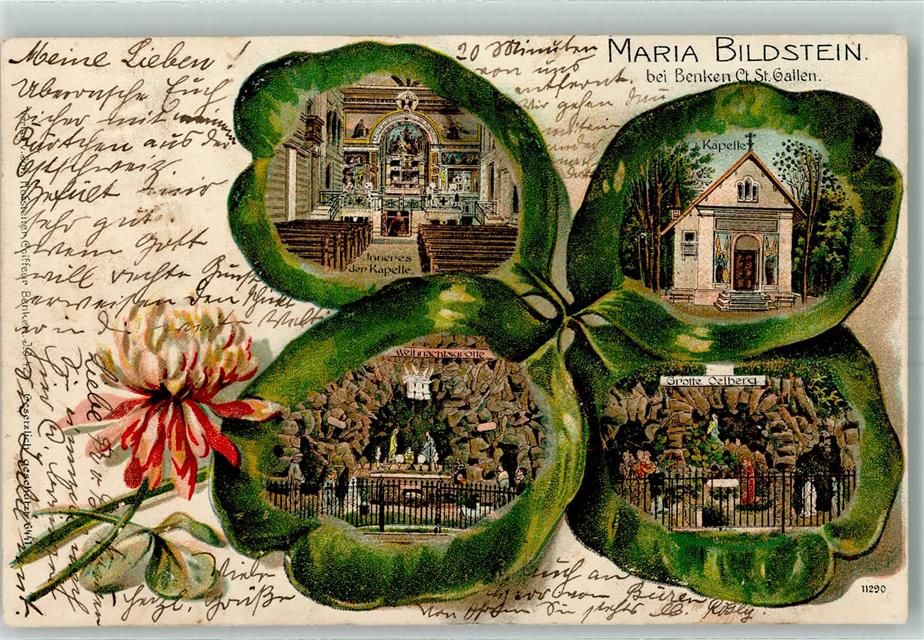 8717 Benken SG 1907 Prägedruck Maria Bildstein Kapelle Weihnachtsgrotte Grotte Ölberg Vierblättriger Klee Lithographie