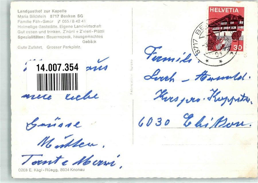 8717 Benken SG Foto AK Gasthaus zur Kapelle