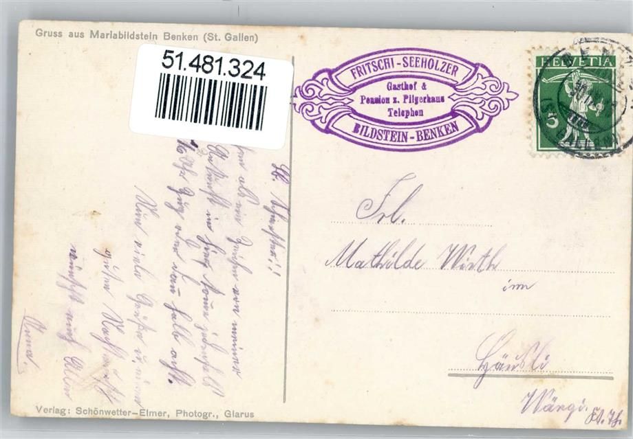 8717 Benken SG - Gnadenkapelle Gasth Pension z. Pilgerhaus