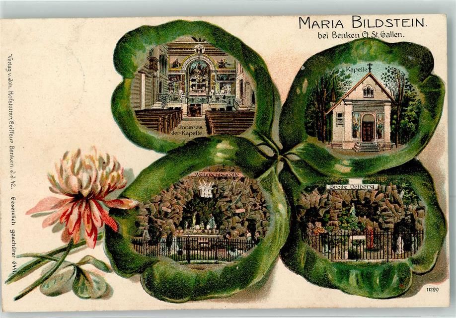 8717 Benken SG Prägedruck Maria Bildstein Grotte Oelberg Weihnachtsgrotte Inneres d. Kapelle