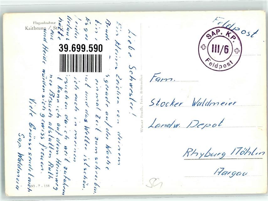 Kaltbrunn, Fliegeraufnahme Feldpost SAP. Kp. III/6