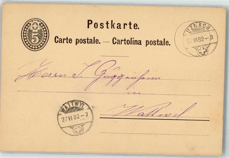 8730 Uznach 1882 Ganzsache 5 Rappen Vorläufer