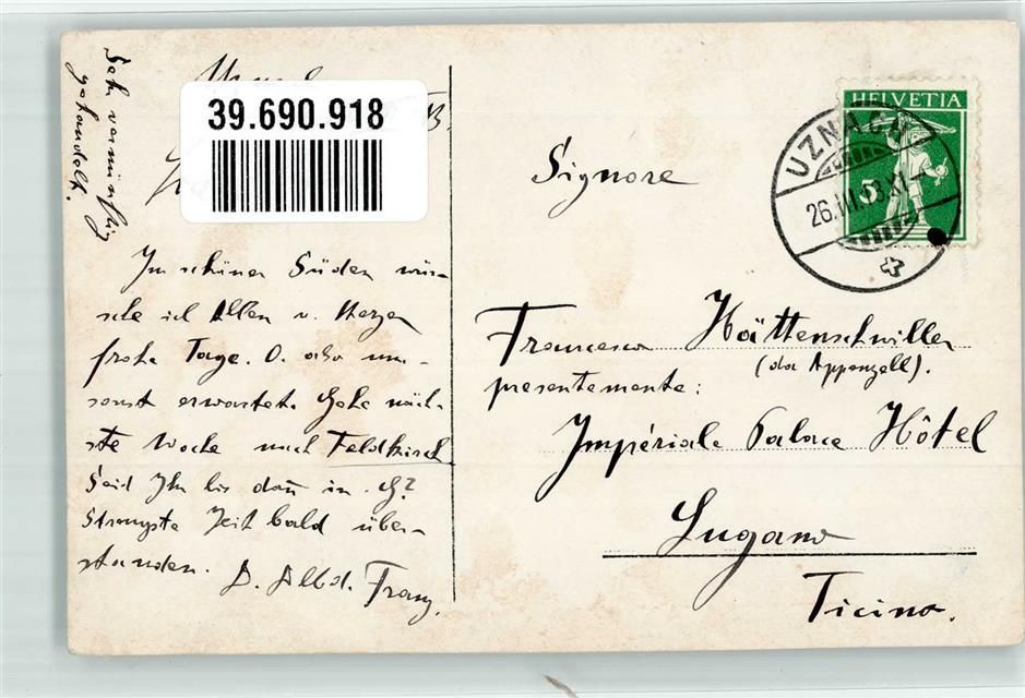 8730 Uznach 1913 - Ort lt. Stempel