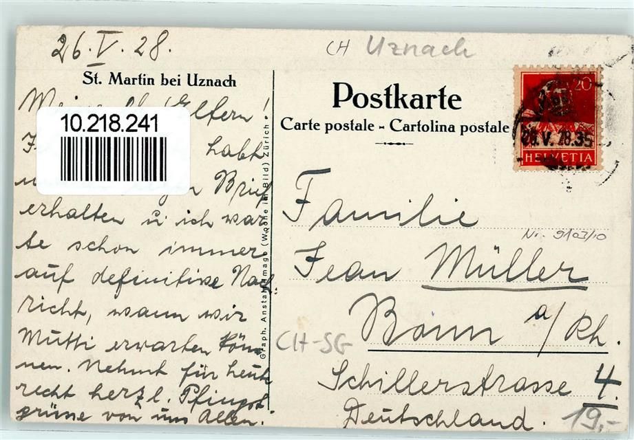 8730 Uznach 1928 Gebrauchsspuren St. Martin