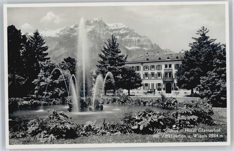 Glarus, Hotel Glarnerhof, Volksgarten, Wiggis, Fontäne