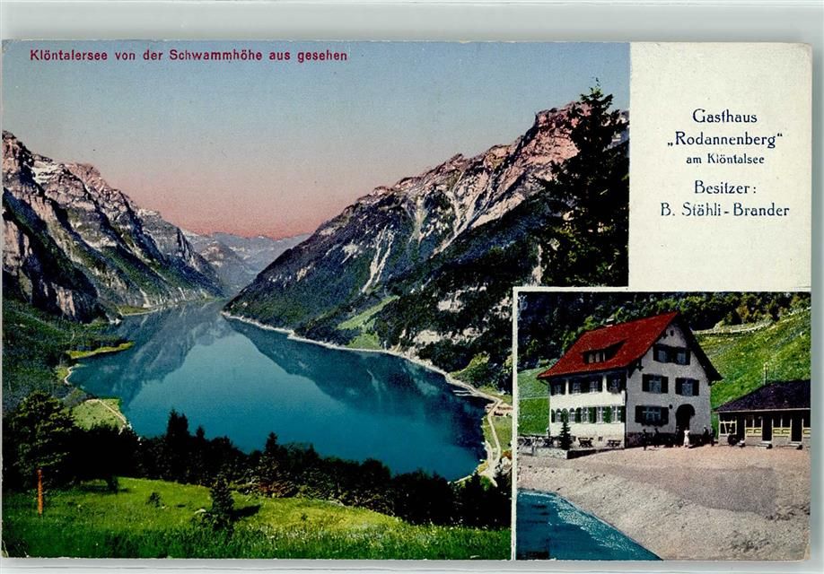 Klöntal, Gasthaus Rodannenberg am Klöntalsee Bes B. Stähli-Brander Hüttenstempel