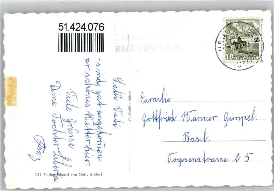 8751 Urnerboden 1943 - Hotel Tell Postamt