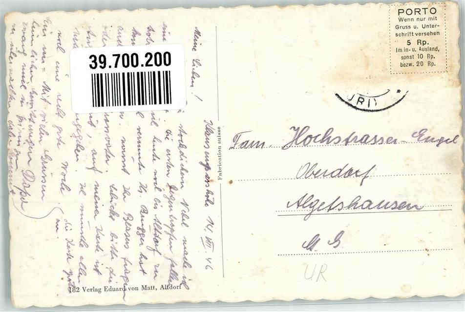 8751 Urnerboden Foto AK Claridenstock Klausenstrasse