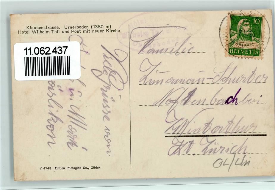 Urnerboden, Klausenstrasse Hotel Wilhelm Tell und Post mit neuer Kirche