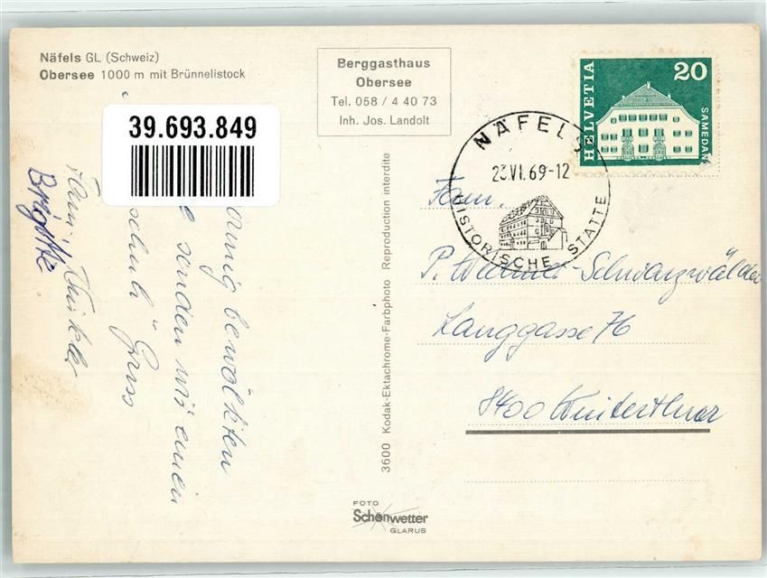 8752 Näfels Foto AK Berghaus Obersee Foto Schönwetter Omnibus