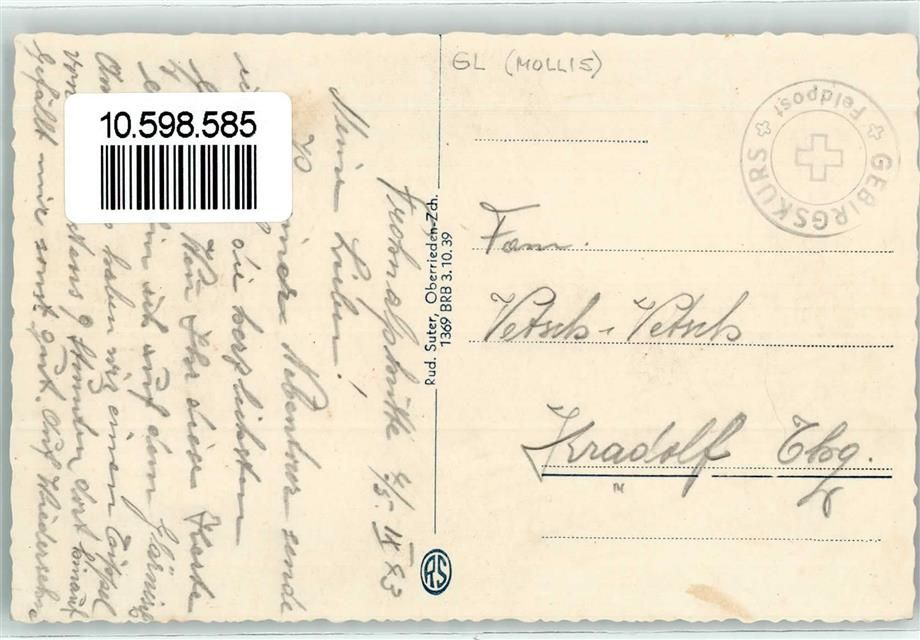 Mollis, Naturfreundehaus Frohnalp Frohnalpstock Feldpost Gebirgskurs