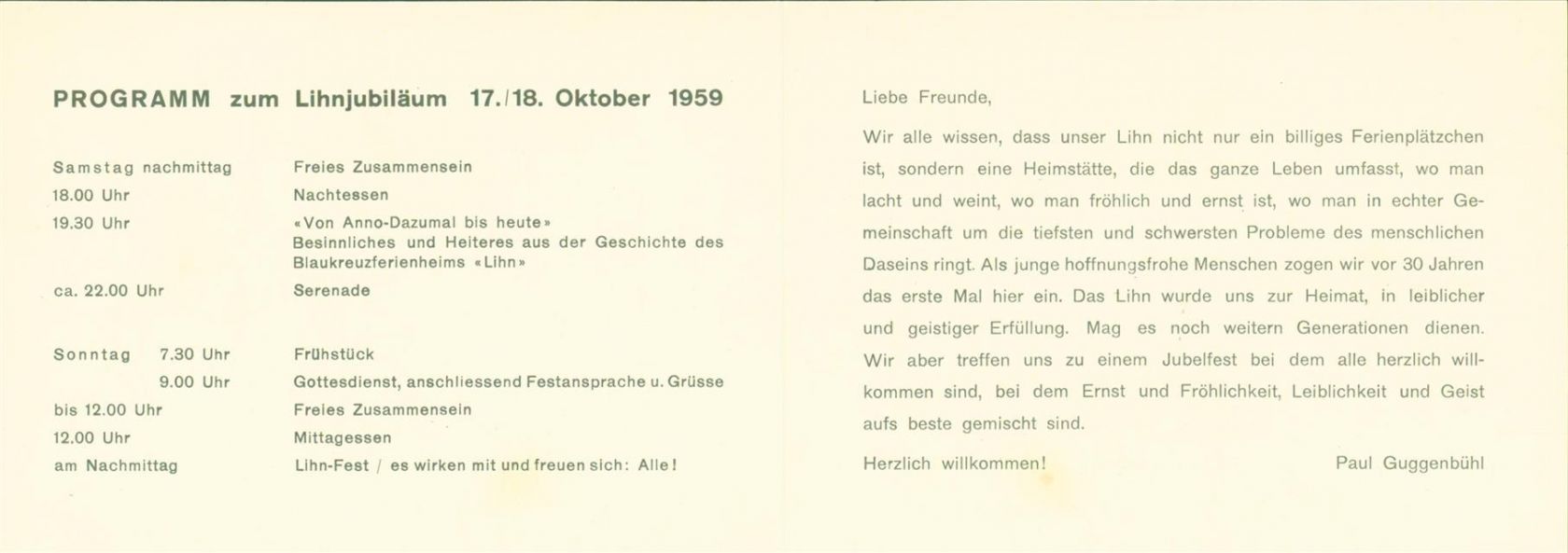 Filzbach, 30 Jahre Hotel Lihn Anmeldeklappkarte