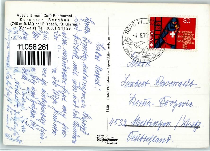 8757 Filzbach - Aussicht vom Cafe Kerenzer-Berghus Blick auf Weesen und Walensee