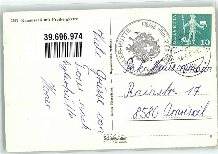 Schwanden GL, Kammseeli Freibergkette Ort lt. Stempel