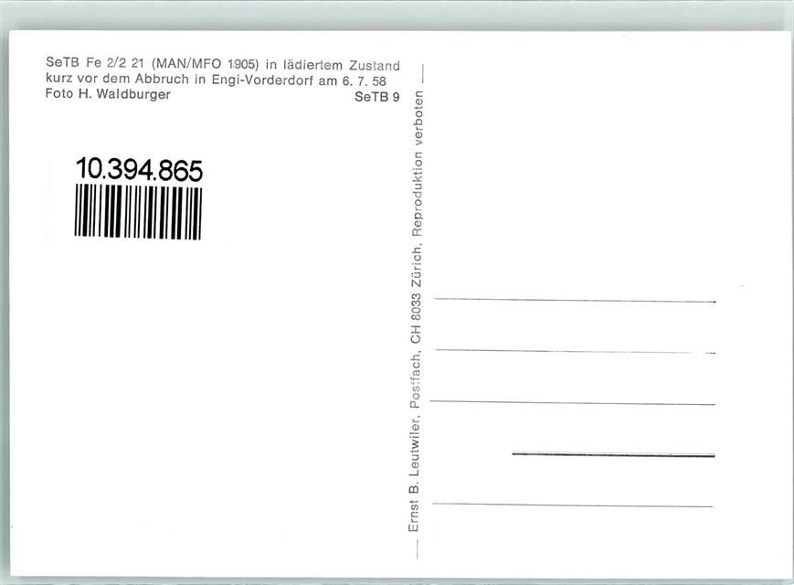 8765 Engi 1958 - Repro SeTB Fe 2/2 21 in lädiertem Zustand kurz vor dem Abbruch in Engi Vorderdorf am 6.7.58