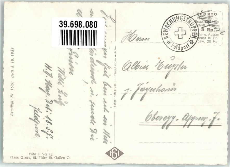 Elm, Sardona Foopass Feldpost Bewachungstruppe Foto Gross