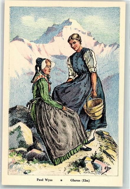 8767 Elm - Schw. Trachten-und Volksliedervereinigung Frauen in Tracht sign. Paul Wyss