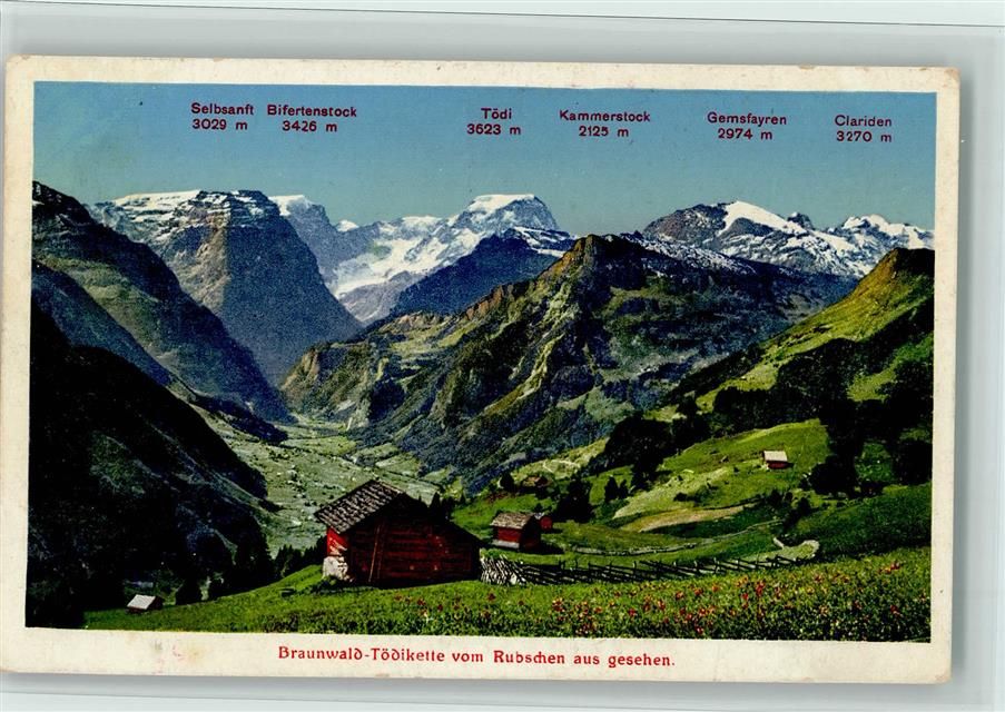 8784 Braunwald - Tödikette vom Rubschen aus gesehen Selbsanft Bifertenstock Tödi Kammerstock Gamsfayren Clariden