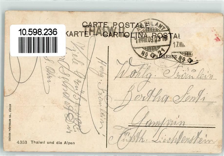 8800 Thalwil 1909 Gebrauchsspuren Alpenkette