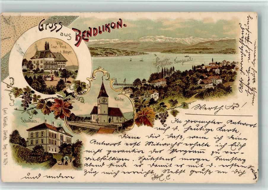 8802 Bendlikon 1899 BOAKC Villa Meyer Schulhaus Lithographie