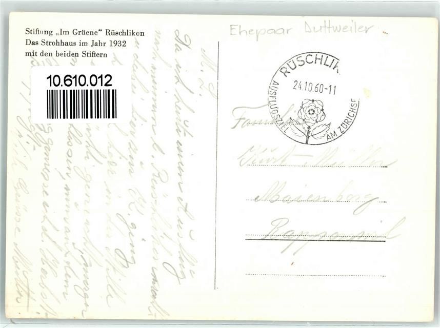 8803 Rüschlikon 1960 - Strohhaus Park im Grüene Ehepaar Duttweiler