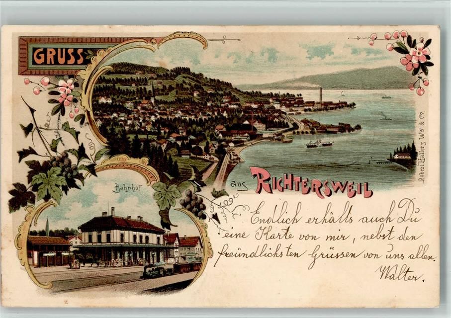 Richterswil, Lithographie Bahnhof Eisenbahn