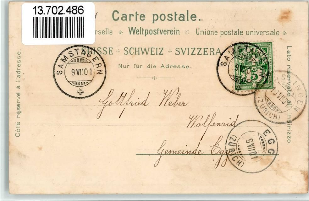 8805 Richterswil 1901 BOAKC Lithographie Bahnhof Eisenbahn
