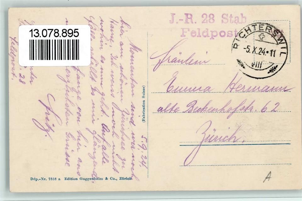 8805 Richterswil 1924 - Nr. 7516 a Verlag Guggenheim, Vue generale, gute Erhaltung AK