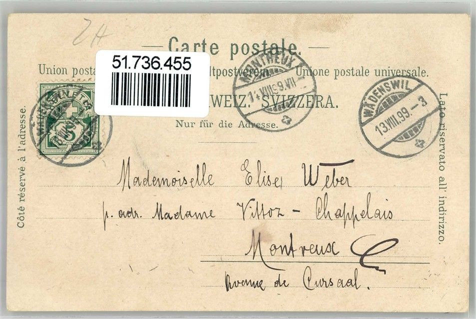 8820 Wädenswil 1899 Lithographie Brauerei Tuchfabrik Villa Weber Bahnhof Hotel du Lac Postgebäude