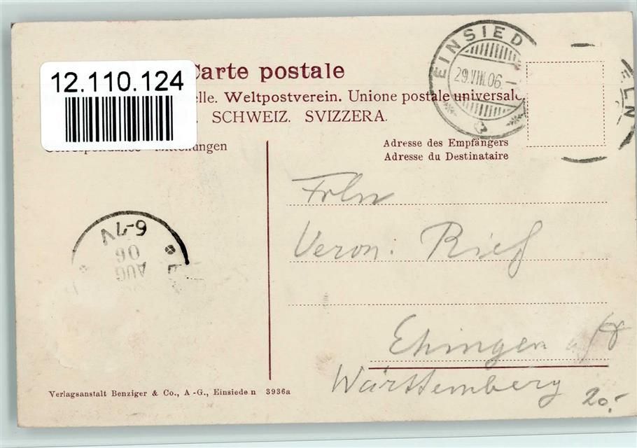 8840 Einsiedeln 1906 - Andenken an Maria Einsiedeln 2-Bildkarte