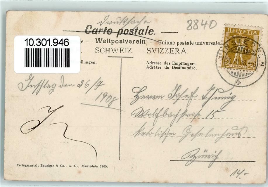 8840 Einsiedeln 1908 Gebrauchsspuren Kloster