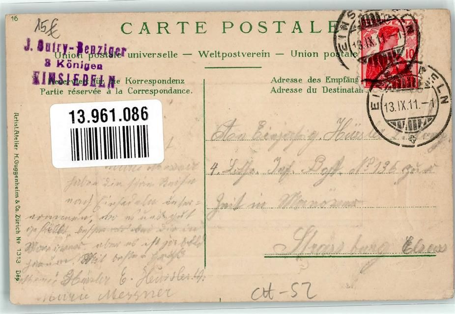 8840 Einsiedeln 1911 Prägedruck