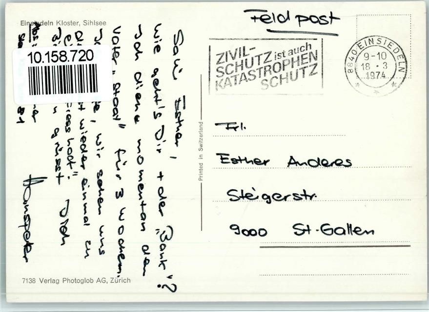Einsiedeln, Kloster Sihlsee Feldpost