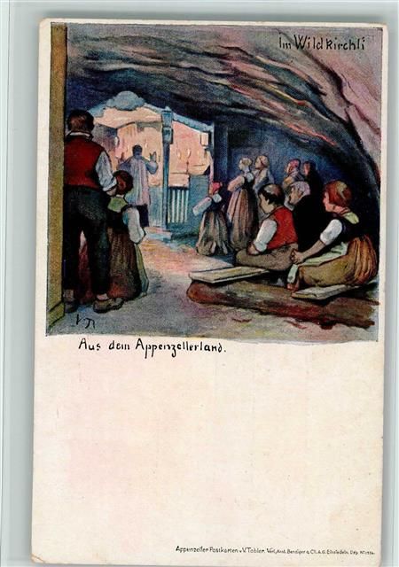 8840 Einsiedeln Künstlerkarte Im Wildkirchli sign. V.M. Aus dem Appenzellerland