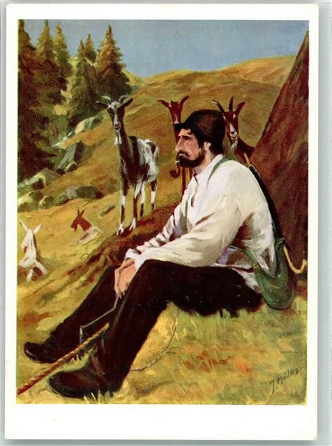 Oberiberg, sign. J.Müller Der Geisshirt Ziegen