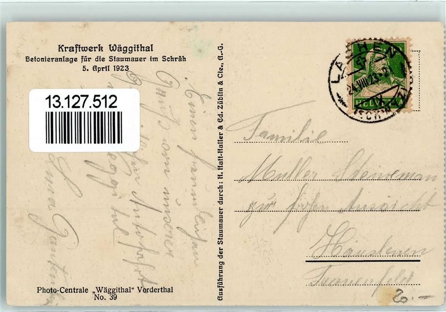 8854 Siebnen 1923 - Kraftwerk Wäggithal Betonieranlage für die Staumauer im Schräh