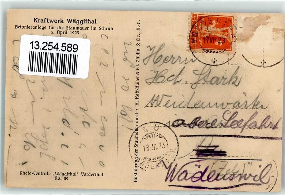 8854 Siebnen - Kraftwerk Wäggithal Betonieranlage für die Staumauer im Schräh